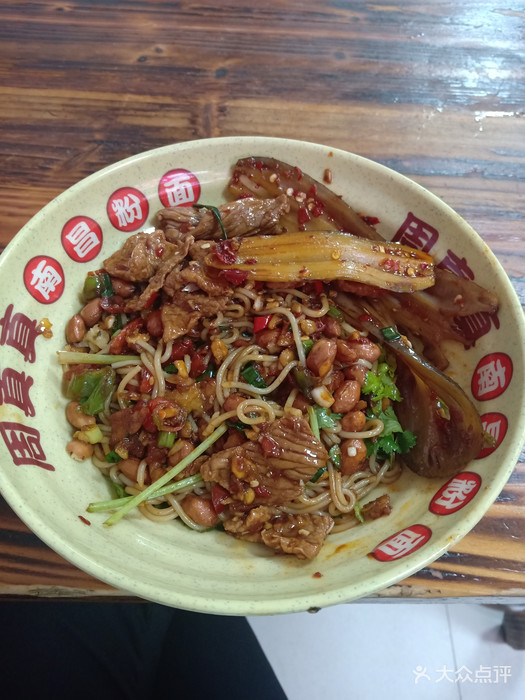 如果不是老客过去,大晚上去可能还不太好呢,外边比较暗,门头不算显眼,看过去应该也是开了蛮久的店了;下着雨的晚上去的所以地面也不算干浄,挺滑的:前台点完餐之后,小票拿到厨房就直接安排拌粉了,出粉拌粉的速度还是很快点的牛肉拌粉作为北方人来说分量不算足里面加了很多的配料(建议多加点花生米)个人口感吃起来是有一点点酸;猪肝蛋汤的猪肝口感还是挺嫩的,我是直接来泡粉吃了;手工小笼包我是觉得真好吃,沾上配料,吸一口里面的汤汁,真的蛮不错.