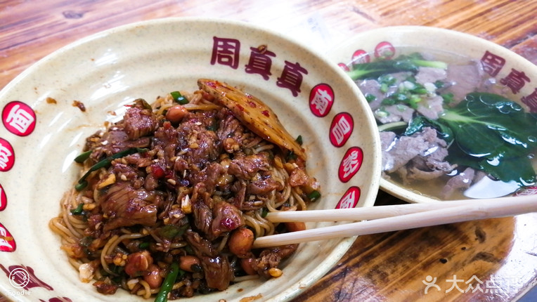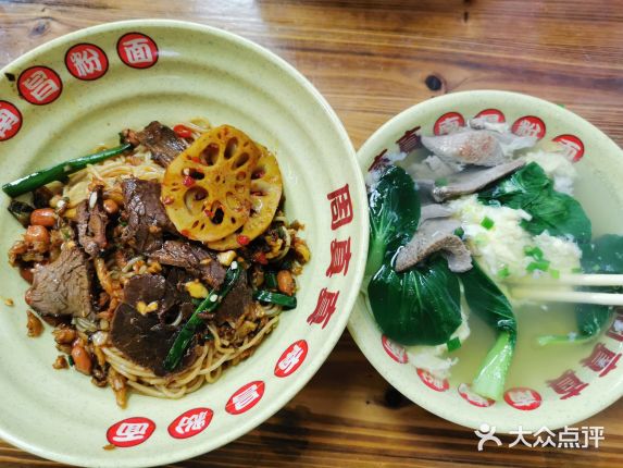 但是!打车碰巧碰到个吃货小哥,强烈鄙视我们要去老三样,说都是外地人去吃的,没有一个本地人!哈哈哈哈然后给我们激情推荐了一圈,八一广场兜一圈发现附近就有这家周真真,二话不说就来了!一碗拌粉+一碗汤似乎是标配,虽说是连锁但味道一点也不差,粉很弹,里面有标配的萝ト干花生米小咸菜,可以另加配菜,藕似乎是每家南昌菜里都有的,再加份牛肉,猪肝汤里的猪肝太滑le,加了很多姜丝祛腥,味道正好!吸溜吸溜2碗下肚!